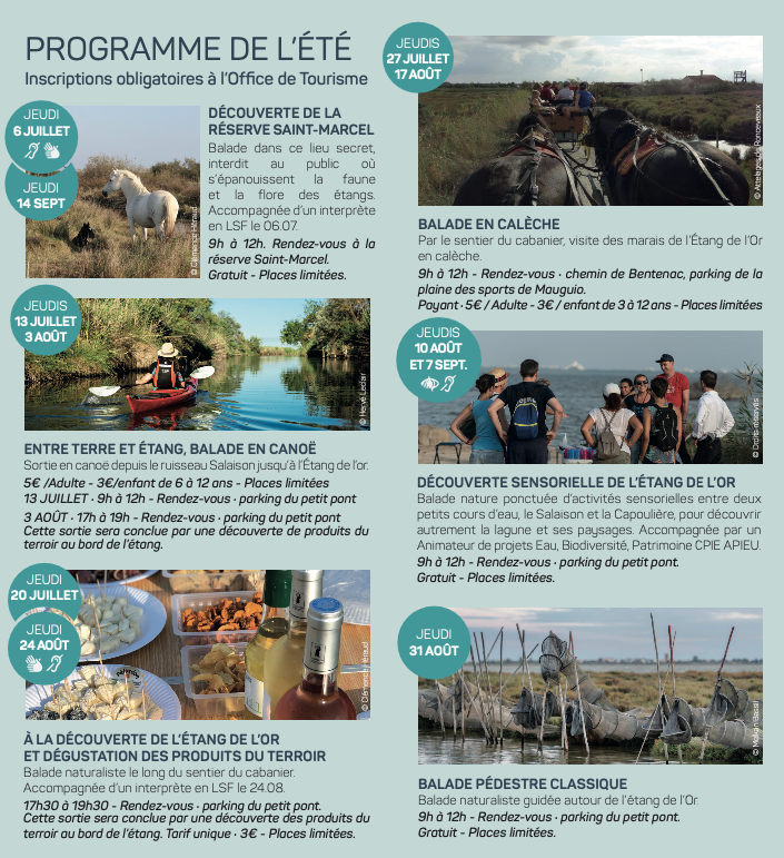 Ces balades guidées se font sur réservation auprès de l’Office de tourisme de Mauguio Carnon : 04 67 50 51 15