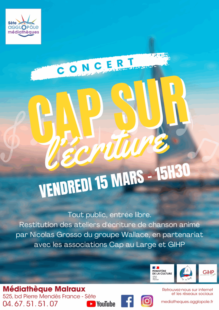 Nous vous invitons à venir les écouter en live le vendredi 15 mars 2024 à 15h30 à la Médiathèque Malraux à Sète !