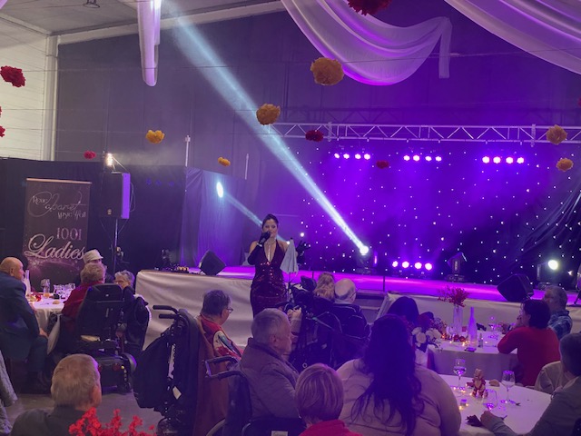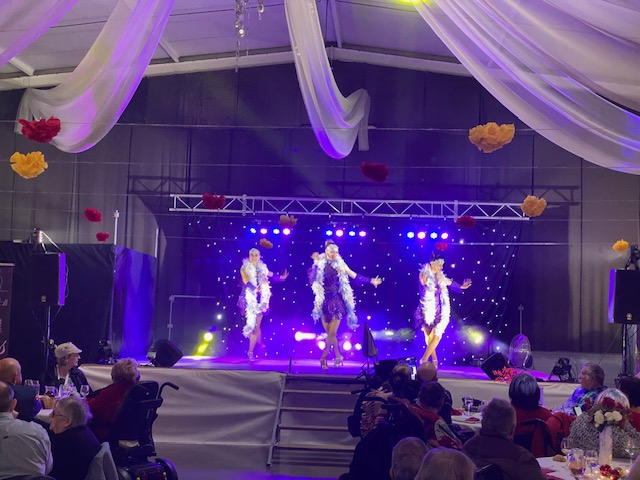 Les convives ont tout d’abord dégusté un déjeuner de fête, puis l’après-midi s’est agréablement poursuivie, pour le plus grand bonheur de tous, avec la représentation donnée par la revue « 1001 Ladies », composée d’une chanteuse, 3 danseuses et 1 responsable Régie Son et lumières.